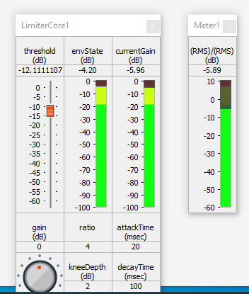 A separate Meter has been added to the output of the LimiterCore1 module. This lets you visualize the actual control signal which performs the gain reduction.