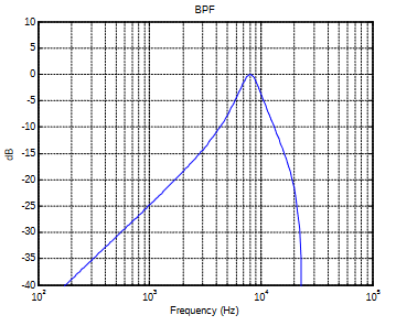 In the broadband approach the entire signal level is reduced when harsh high frequencies are detected. A standard AGCLimiterCore can be used with a sidechain EQ which accentuates the 8 kHz problem frequencies. The downside of this approach is that when sibilants are detected the gain of the entire signal is reduced; this is not ideal.