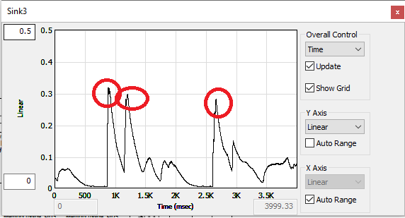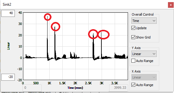 Adjust the smoothing time so that the audible pops in the signal create clearly distinguishable peaks, as shown.