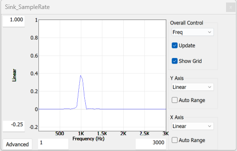 The Sink Display gives multiple methods by which the user can control the plotting of the input data, which is known as ‘Overall Control’. In Overall Control the user can choose between Time Domain, Frequency Domain, Index and Custom.
