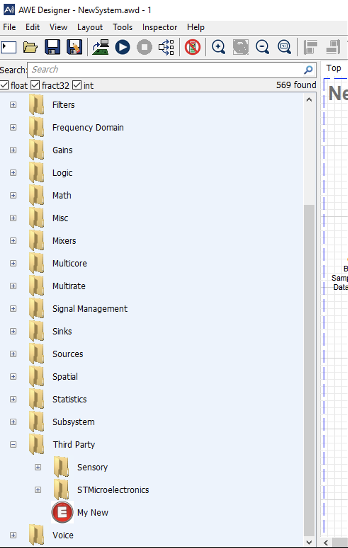 Once the module is included in the target firmware it will be available in Designer while AWE Server is connected to the target.