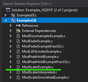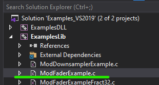 In the VS2019 Solution Explorer, open ModFaderExample.c.