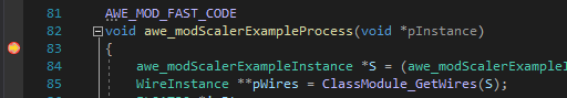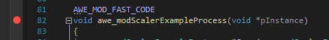 Add a breakpoint at the awe_modScalerExampleProcess() function.