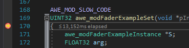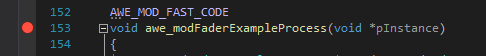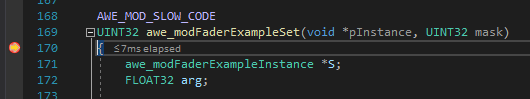 Put a breakpoint on the awe_modFaderExampleProcess() function.