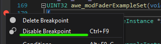 Put a breakpoint on the awe_modFaderExampleBypass() function.