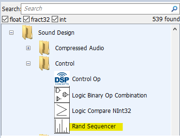 The Rand Sequencer module can be found in the Sound Design/Control folder or by using the search window in the module browser. It is called “Rand Sequencer”.