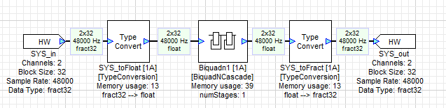 Fract32 – Fractional representation where values are scaled in the range [-1, +1). This is a fixed point representation with an implied scale factor of 2-31. The input and output pins of a layout are almost always in fract32 format.