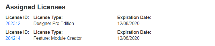 Developers can see all licenses assigned to them in the "Assigned Licenses" section of the My Account page.