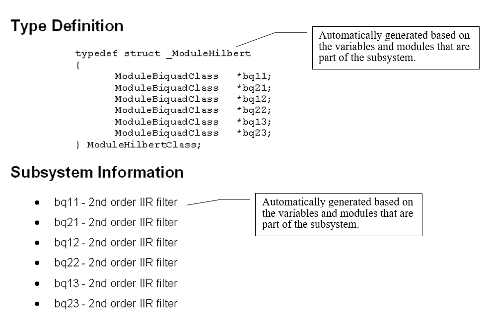 In addition to generating source and header files, Audio Weaver also generates documentation for modules and subsystems in Microsoft Word format. The generated documentation is shown as item 5 in Overall Development Environment. The information in the documentation is pulled from several different places: