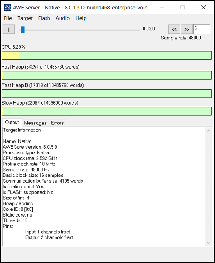The Profiling in Audio Weaver: Tips and Tricks Application Note contains instructions for computational and memory profiling of and Audio Weaver Designer (.awd) signal flow in Audio Weaver. The profiling works for both Native (PC) and on embedded targets and in real time on a running .awd layout.