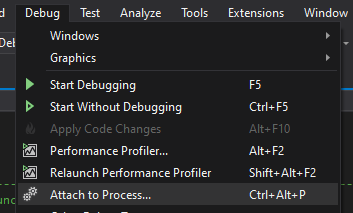 In VS2019, select “Debug->Attach to Process”.