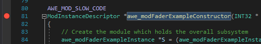 Put a breakpoint on the awe_modFaderExampleProcess() function.