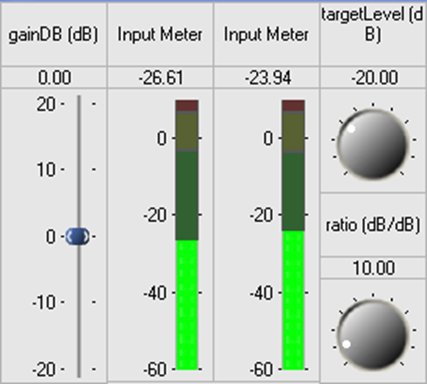 Using the inspectors, tune the system to an audibly different state. In this example, lowering the targetGain variable of the AGC Core to -40 dB will make the audio much quieter.