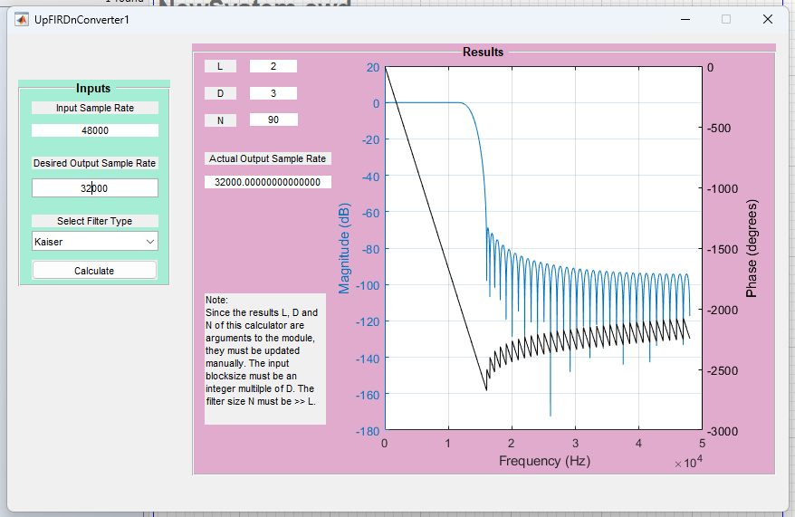 In this example, if we had an input block size of 32, we could not implement a target sample rate of 32000 Hz properly as D needs to be a factor of the input block size.