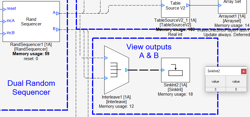 Another optional Sink Display is added so that you can watch the Rand Sequencer's A and B outputs while listening to the audio output.
