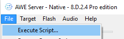 (Optional, or proceed to step 8) Before converting this preset.aws to an .awb we can run a simple test that the preset script works when executed. Start by running the design, in this case with freq set back to 1000. This could also be run Natively or Embedded using the structure .aws from the Server window by going to File → Execute Script: