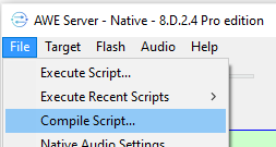 With the preset.aws confirmed to be working, we can convert to an .awb file by going to File → Compile Script in the Server window: