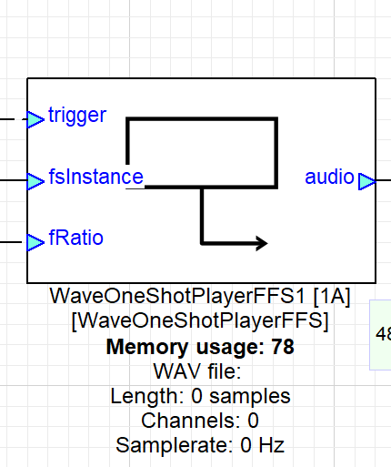 The Wave One Shot Player FFS has three input and one output pins. The added input pin is explained below whereas the the rest remain the same as for RAM.