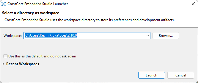 Figure 1: CCES Studio Launcher Workspace Directory