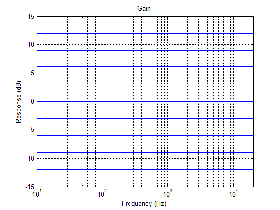 There are 5 coefficients that the user must set: b0, b1, b2, a1, and a2 (a0 is always assumed to be 1). Audio Weaver does not check for stability and care must be used when computing the filter coefficients. There are several variants of Biquad filters. The simples – Biquad – has a single stage and implements the different equation shown above. BiquadCascade implements N stages of filtering with each channel using the same coefficients. BiquadNCascade implements N stages with each channel have its own set of coefficients. Finally, BiquadSmoothed implements a single Biquad stage with coefficient smoothing on a block-by-block basis.