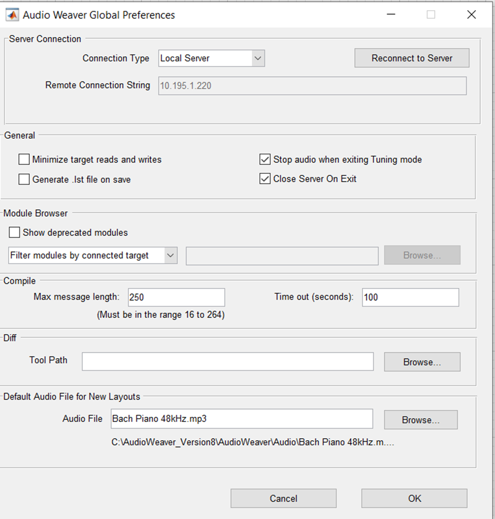 To apply custom Audio Weaver Designer settings, use the Global Preferences menu at ‘File → Global Preferences’.