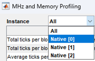 To display profiling information for only one specific Audio Weaver instance, you can do so by selecting the desired Audio Weaver instance from the Instance drop down menu in the upper left-hand corner: