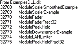 If the DLL was properly built, you'll be able to open the Server and see the new library of examples listed. Select Target > List Modules and scroll down the list looking for the ExamplesDLL.dll entry: