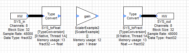 In this example layout, we have started by removing the deinterleave and interleave modules from the default layout. Find the “Examples” folder in the Module Browser and drag a Scaler Example module into your layout.