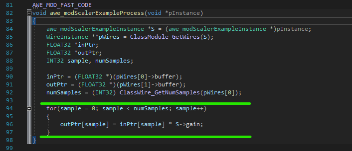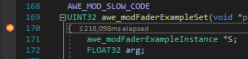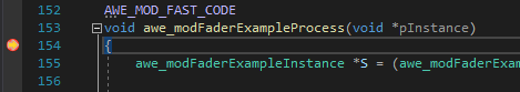 Put a breakpoint on the awe_modFaderExampleProcess() function.