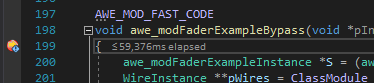 Put a breakpoint on the awe_modFaderExampleBypass() function.