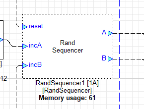 Internal variables IndexA and IndexB are incremented by the incA and incB inputs, respectively. The individual indices are used to read the entry from the corresponding sequence and present it at the corresponding output. When either index is incremented from (seqLength/2 - 1), IndexA and IndexB are both reset to 0 and the random vector is regenerated.
