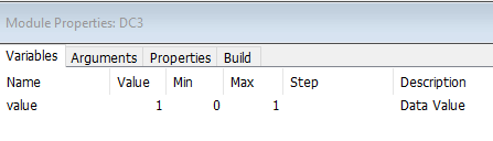 Attaching the DC3 module to the Rand Sequencer’s reset pin automatically resets the module, generating a new random output vector, when the layout starts running. Set DC3’s value to 1.